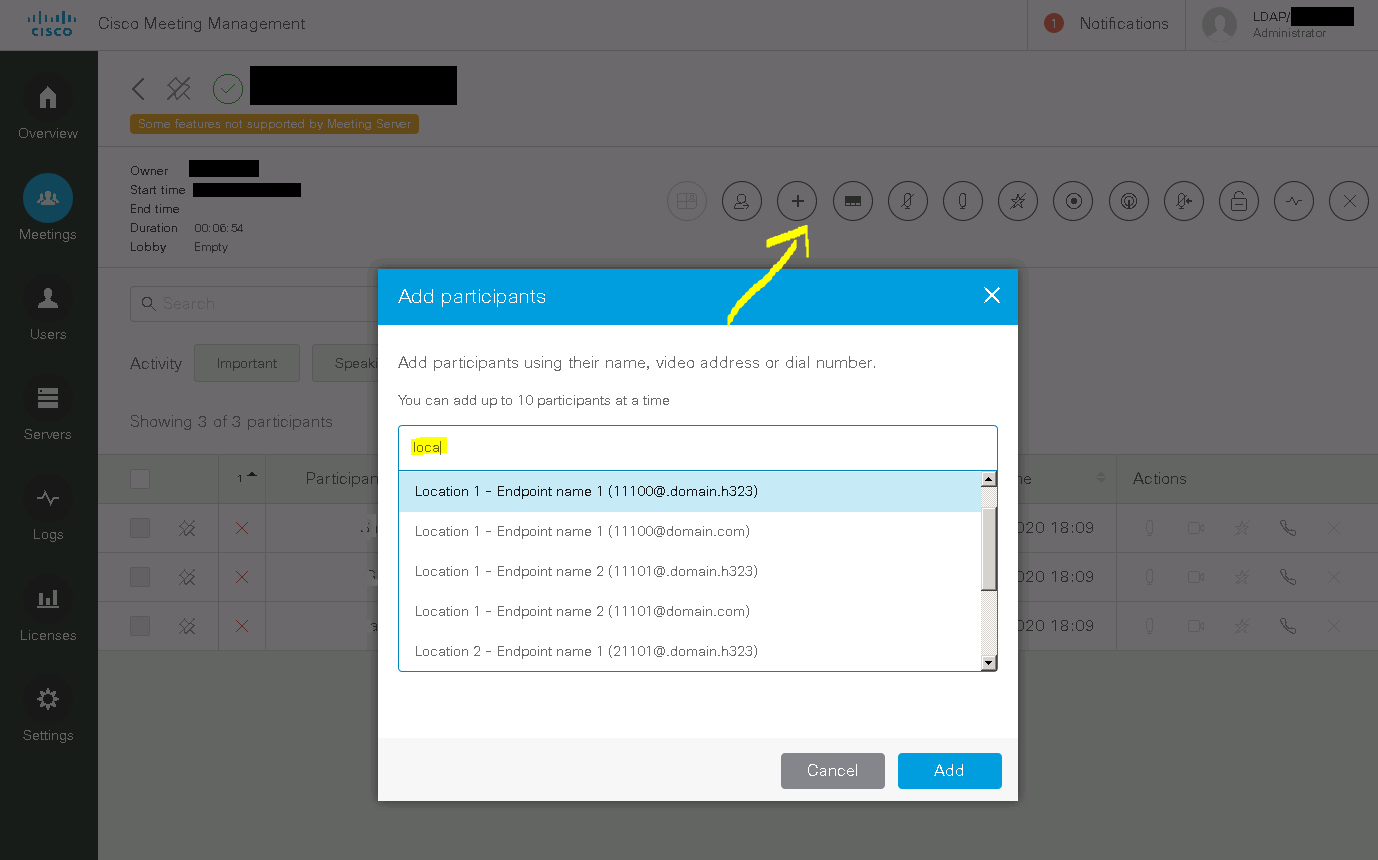 Add the possibility to search and call endpoints from Cisco Meeting Management or from Cisco Endpoints (SX10/SX20/Codec Plus/Spark Room/Etc) without having a Cisco TMS (TelePresence Management Suite) server.