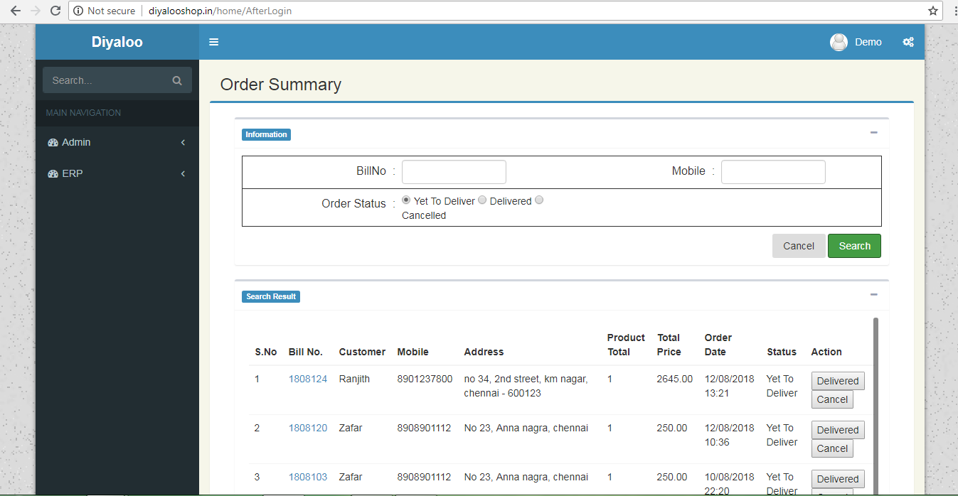 Demo Link : http://diyalooshop.in/Home/Login