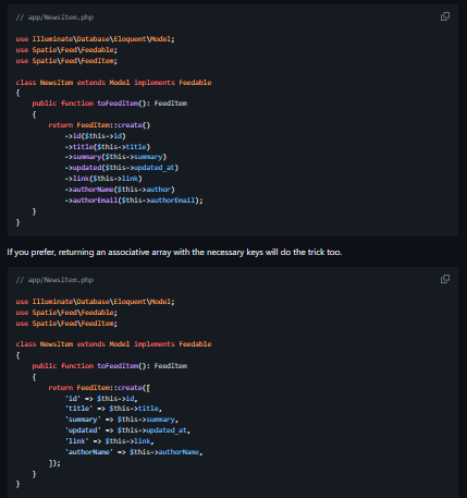 This package provides an easy way to generate a feed for your Laravel application. Supported formats are RSS, Atom, and JSON. There's almost no coding required on your part. Just follow the installation instructions, update your config file, and you're good to go. Spatie is a web design agency based in Antwerp, Belgium. You'll find an overview of all our open source projects on our website.