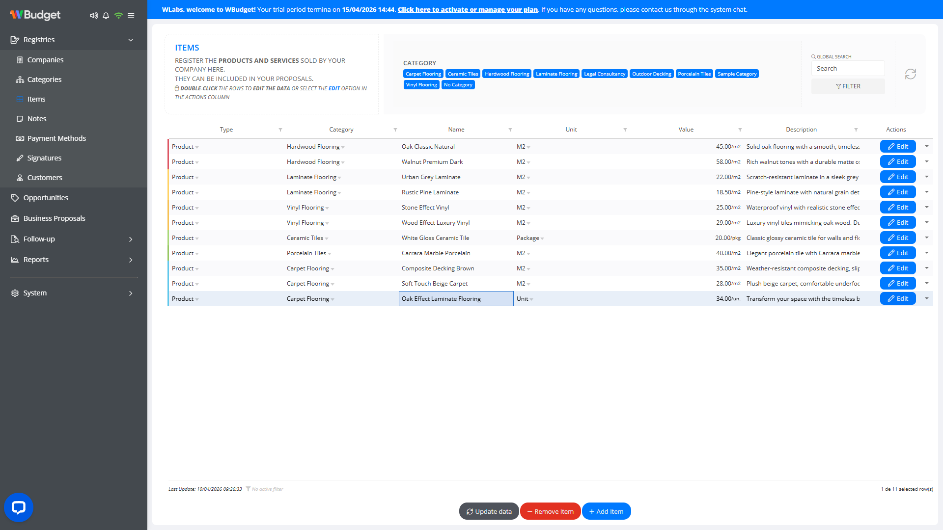 WBudget is a web platform designed to simplify the creation, editing, and submission of quotes and sales proposals. Its user-friendly interface allows professionals and companies to generate professional-looking documents and streamline sales processes. Users can create custom databases by adding specific categories, attributes, and statuses according to the requirement.